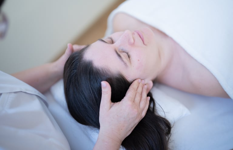 V drugem delu se prepustite sproščujoči masaži obraza, lasišča, ušes in dekolteja, ki nežno, a učinkovito odpravlja stres in napetost. Ta globoko sproščujoča masaža pomaga pri uravnavanju energije v telesu, izboljšuje splošno počutje ter pripomore k temu, da je vaša koža sijoča in osvežena.