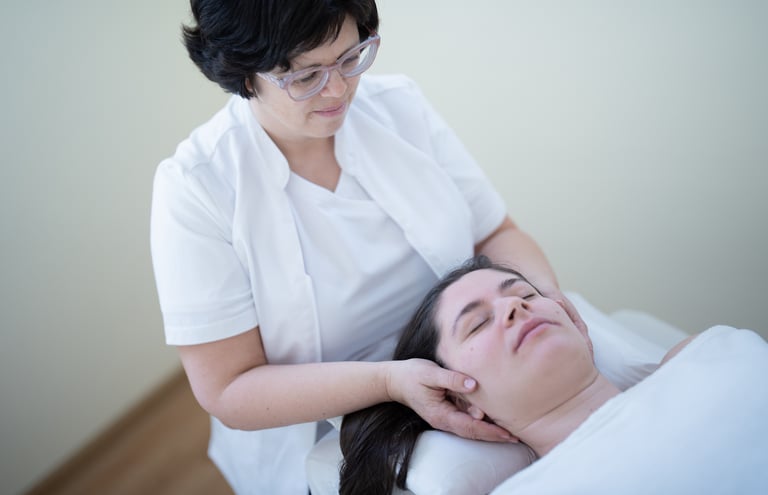 V primeru težav ali da bi ohranili zdravje čeljustnega sklepa in se izognili simptomom, kot so obrazne bolečine, šumenje v ušesih, bolečine v ušesih, občutek suhih ali pekočih ust, glavoboli, težave z zobmi, bolečine v vratu, vabljeni na individualno obravnavo, kjer vam preko anamneze, pogovora in pregleda sestavim individualni program vaj za samoobravnavo doma. Manualna obravnava zajema sprostitev čeljustnega sklepa, jezika, fascij, obraznih in čeljustnih mišic ter živca vagus. Vagus je deseti možganski živec in glavni živec parasimpatičnega živčnega sistema, ki nas regenerira, zdravi in sprošča. Poteka od možganskega debla navzdol in ustvarja pomembne povezave med možgani in prebavnimi organi, pljuči, srcem, vranico, jetri in ledvicami.